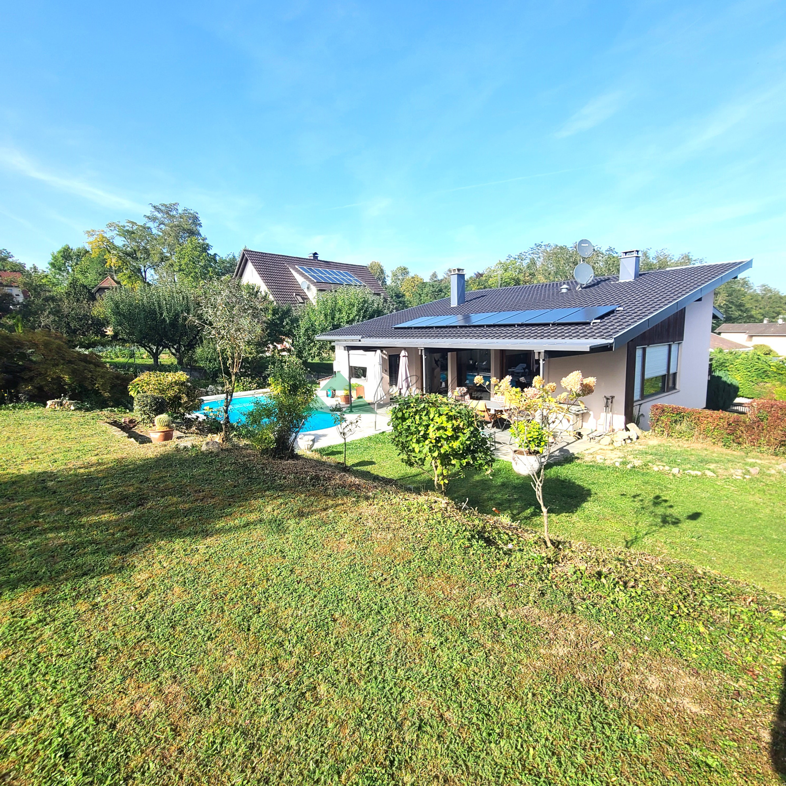 Emplacement idéal : quartier calme, sur les hauteurs et situé à quelques minutes de la frontière suisse ainsi que de l’arrêt de bus.