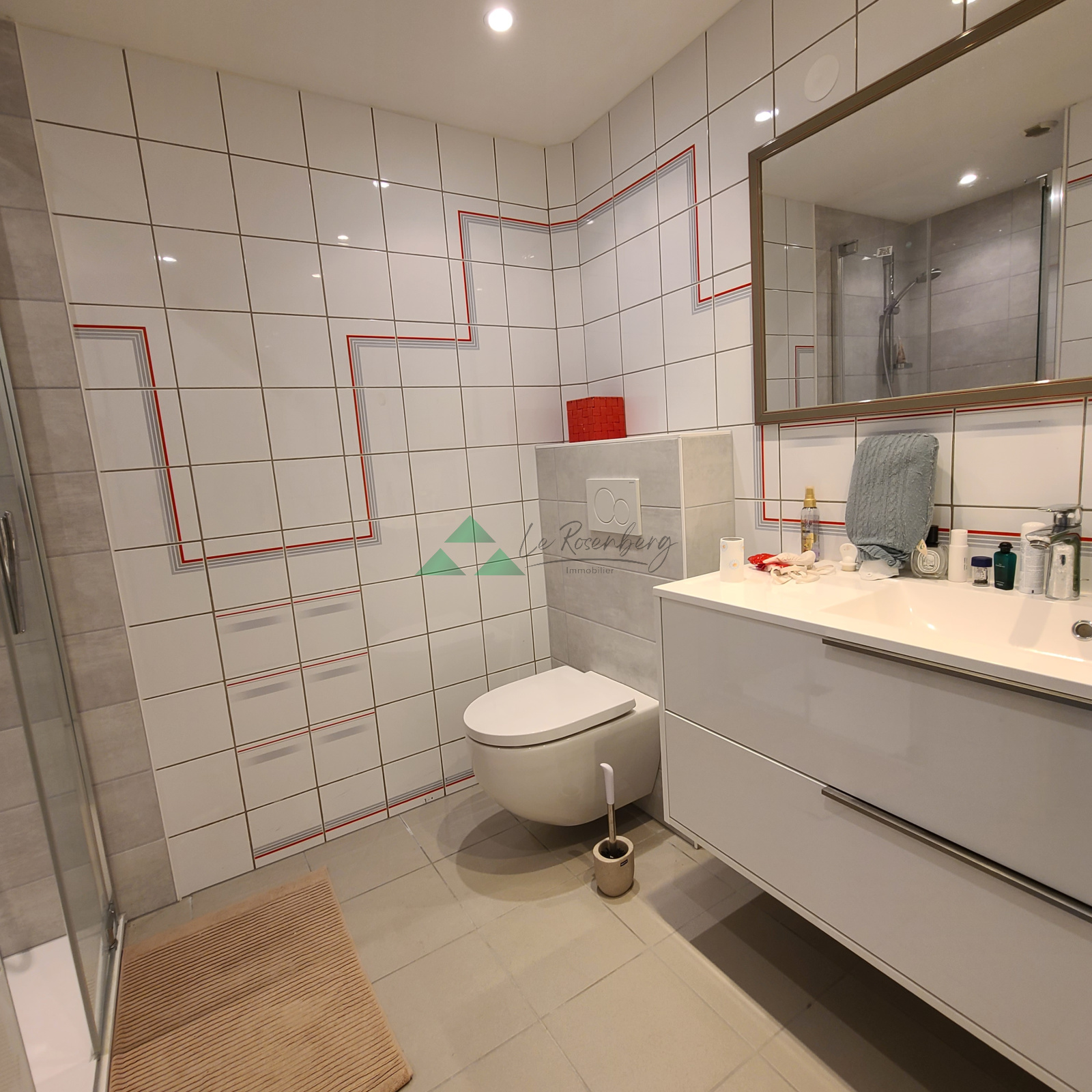 Un dégagement dessert 2 chambres avec accès balcon et vue sur Bâle, un bureau, une salle de bains avec wc et dressing attenant.