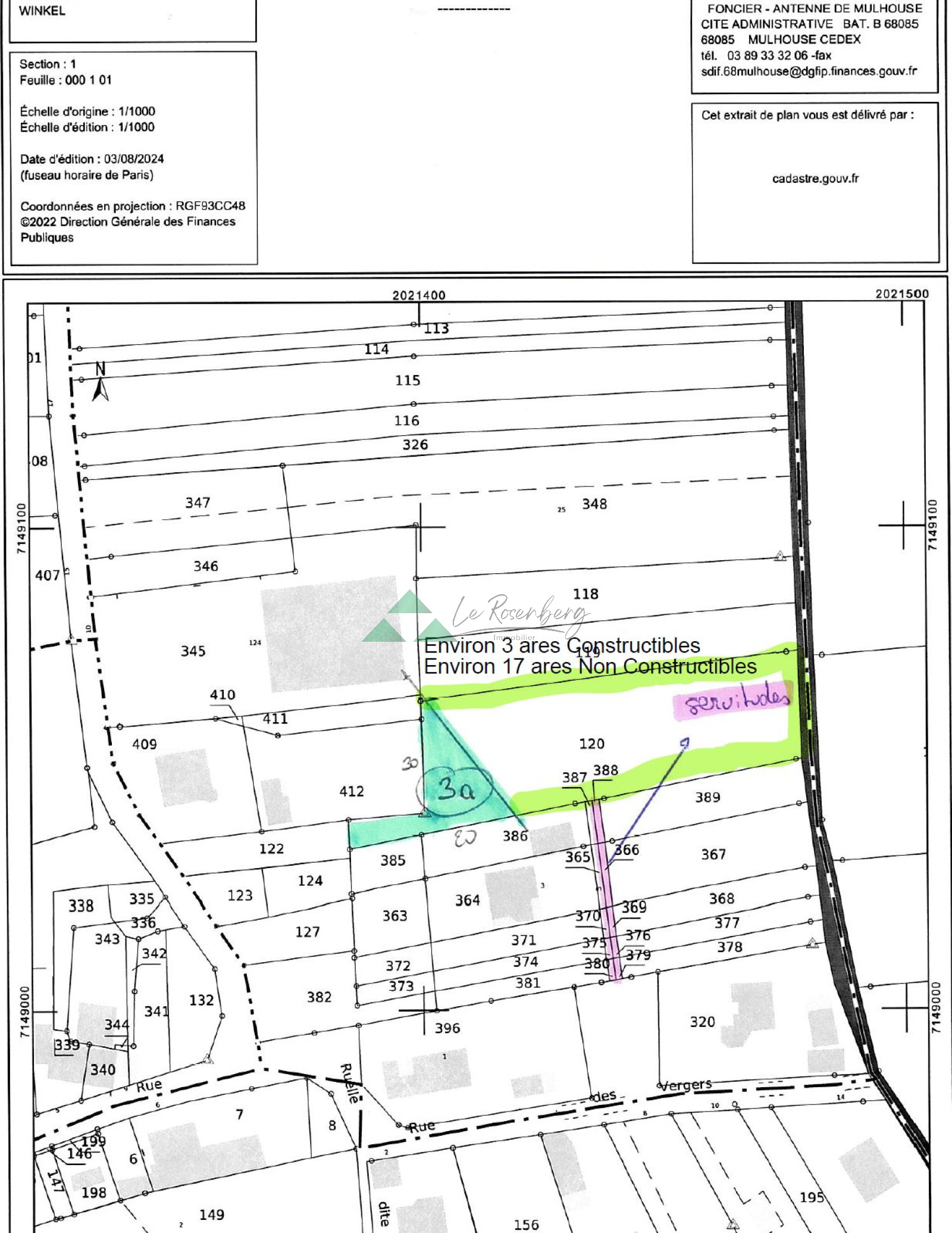 Winkel, au calme, terrain de 20.86 ares dont environ 3 ares constructibles.